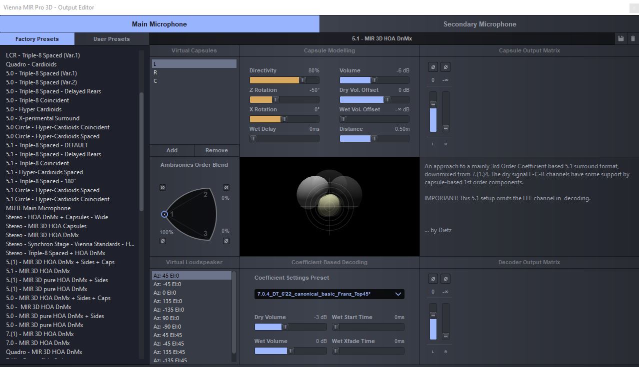 Raumsimulationssoftware MIR PRO 3D der Vienna Symphonic Library (VSL). Der
